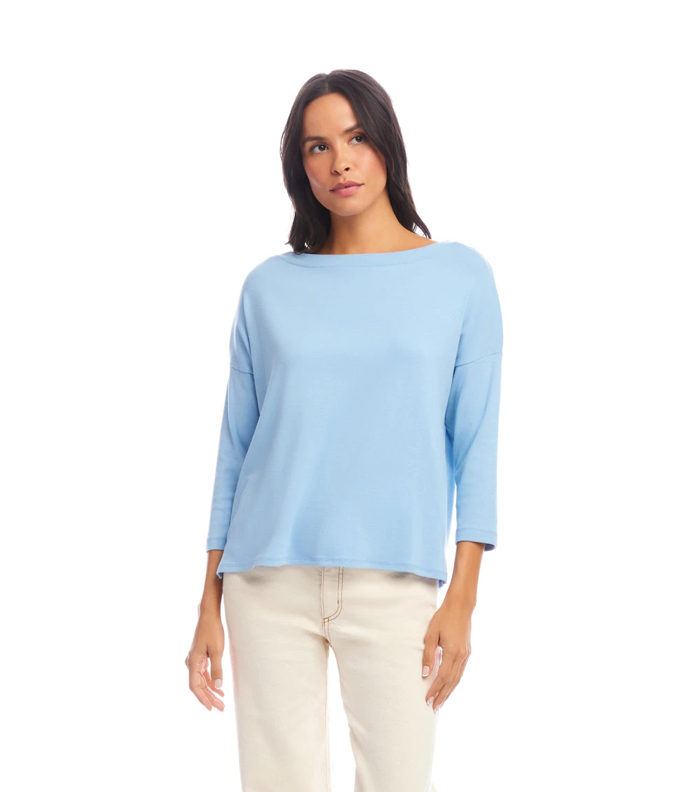 This boatneck top is the perfect addition to your spring wardrobe. Made from a comfortable cotton blend material, it features 3/4 sleeves and a relaxed fit for a casual yet stylish look.