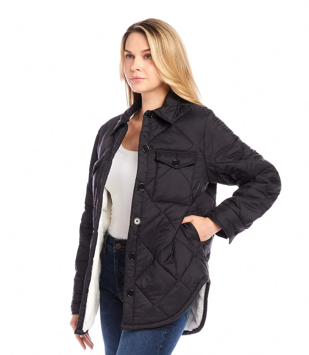 Stay warm and stylish with our quilted jacket, featuring a luxurious faux fur lining. The perfect combination of cozy and chic, this jacket will keep you warm and comfortable on those chilly days.