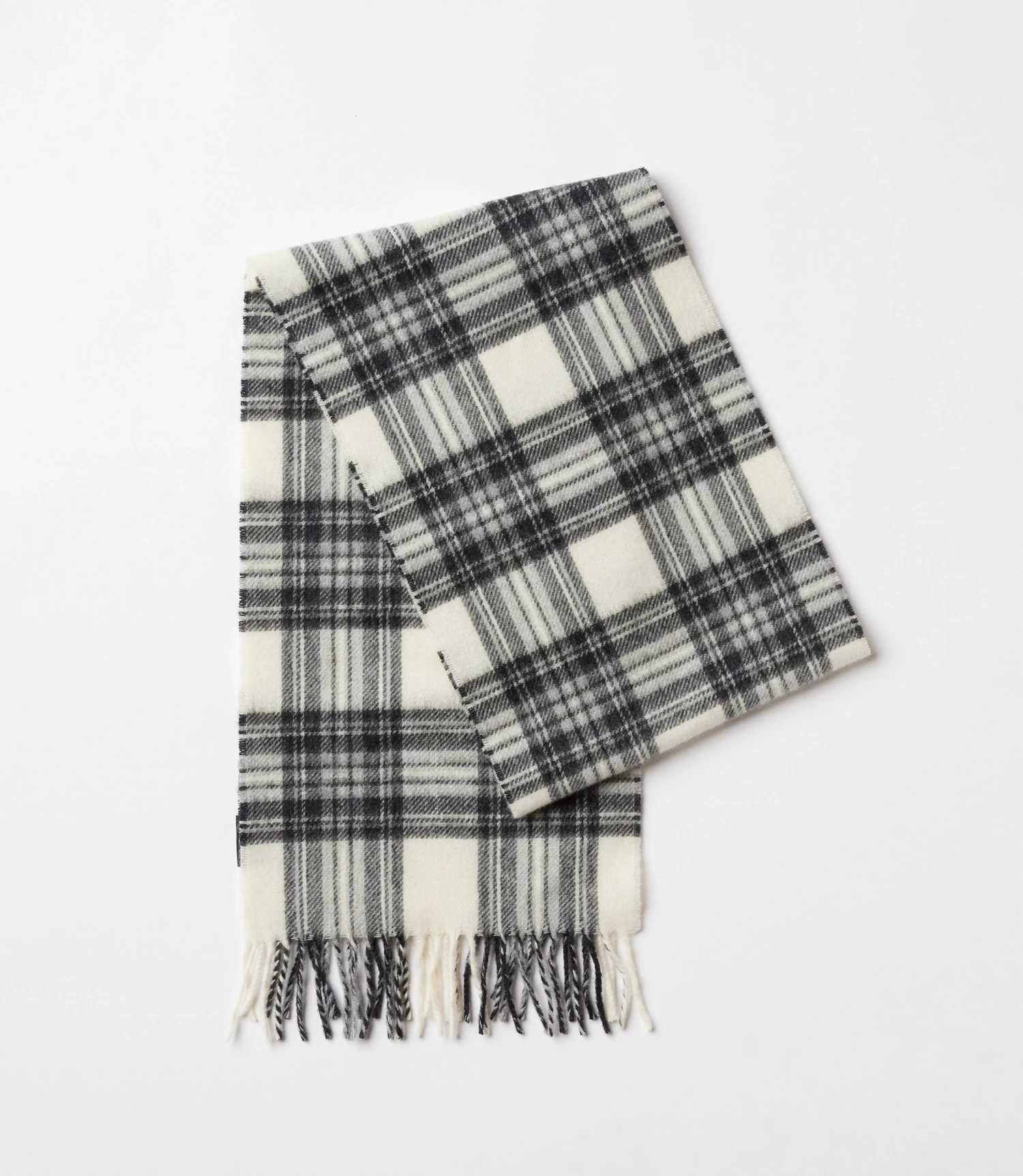 Merino Wool Fringed Plaid Scarf