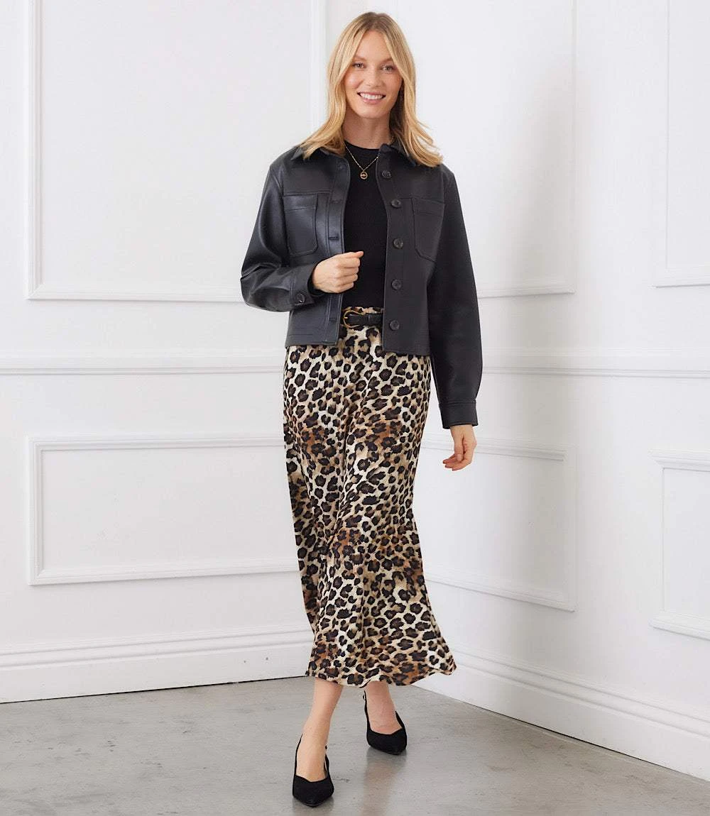 This striking skirt brings effortless style with its sleek silhouette and side slit detail. Designed with an easy pull-on elastic waistband, it’s finished in an animal print knit and a flattering midi length.