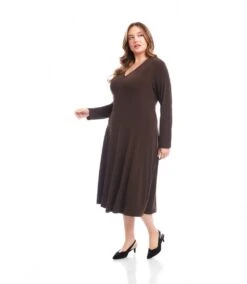 Plus Size Long Sleeve V-Neck Button Detail Dress