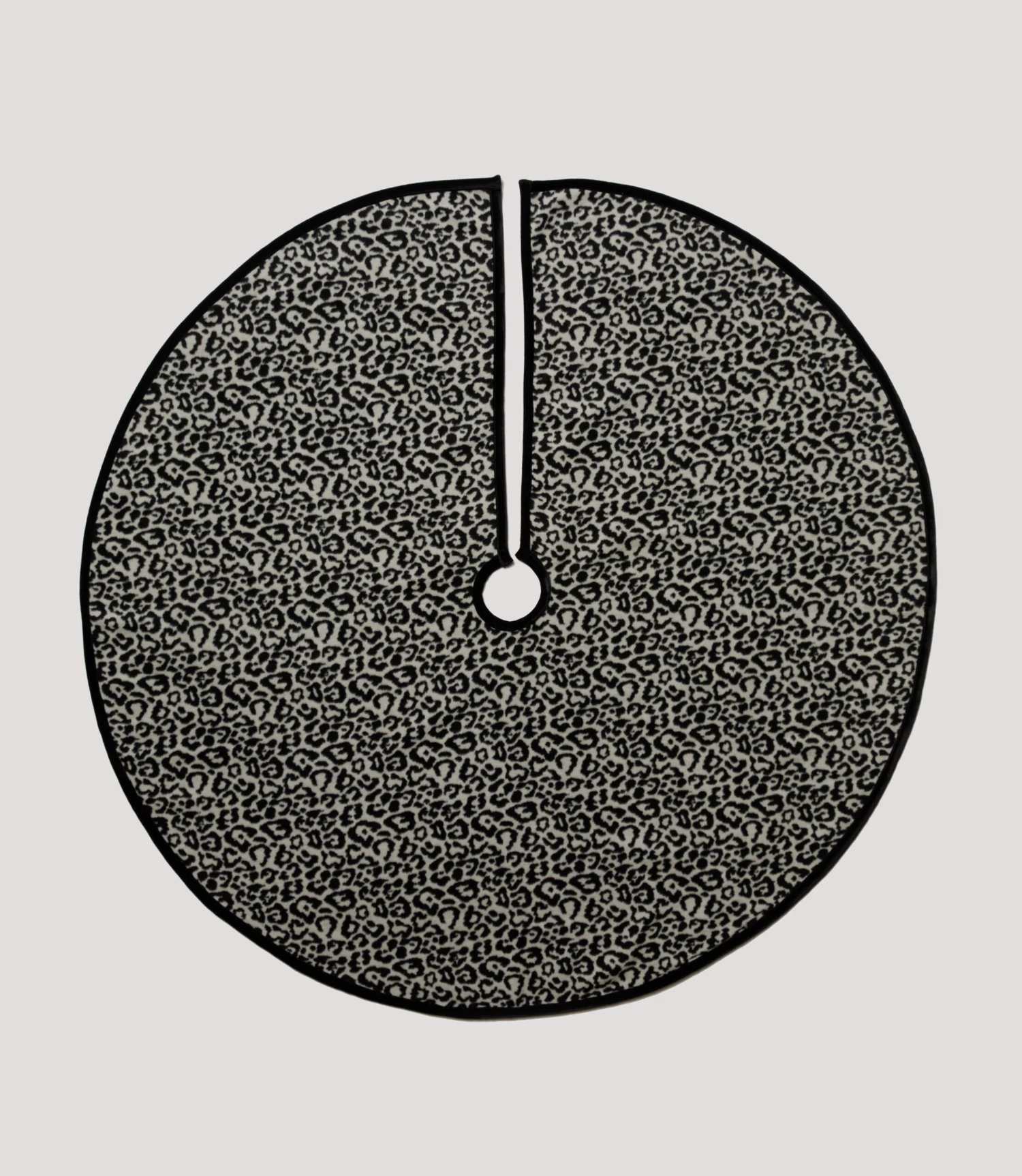 Add a stylish touch to your holiday décor with this reversible Christmas tree skirt. Featuring a classic red-and-black plaid on one side and a leopard print on the other, it’s finished with sleek black trim for a polished look. The round design with a center opening makes it simple to wrap around the base of your tree, while the soft fabric adds a cozy, festive feel.