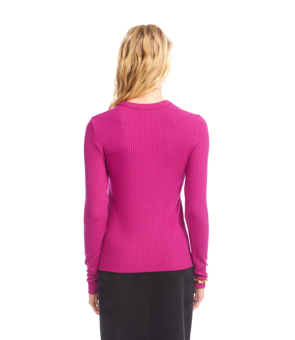 This ribbed long sleeve top features a classic crew neckline and a body-hugging silhouette that layers with ease or stands effortlessly on its own. Crafted from a soft, stretchy knit, it offers all-day comfort with a sleek, flattering fit.
