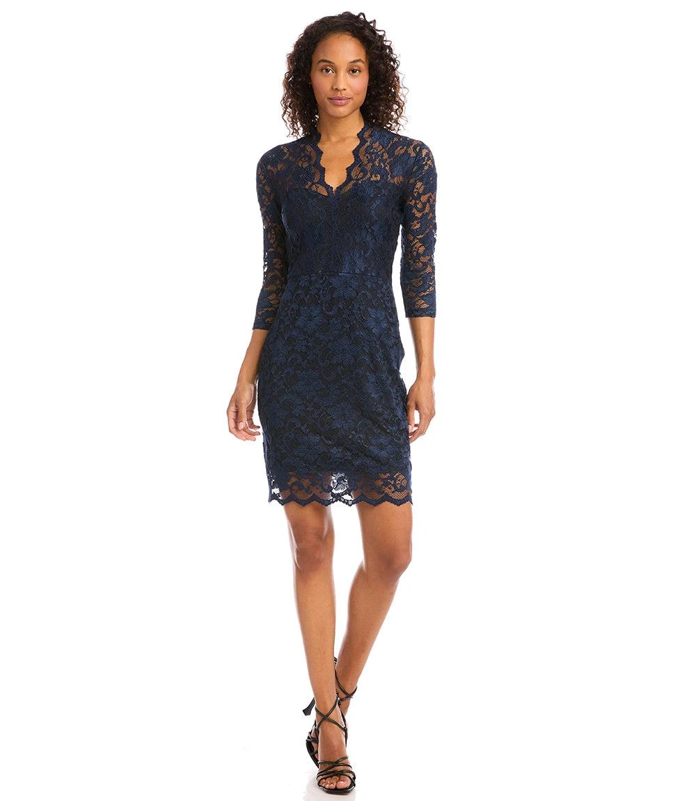This V-Neck Scallop Hem Lace dress is the ultimate style for any occasion. Super-stretchy floral lace covers a lined sheath silhouette and creates a sheer illusion at the neckline, sleeves, and scalloped hemline. Pull this dress on, add some heels, and you’ll be ready for your next event – drinks, dinner, or wedding – without additional effort.